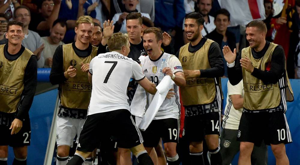 El defensa del Valencia Shkodran Mustafi (19) y el capitán Bastian Schweinsteiger, en el descuento (90+2), y poco después de pisar la cancha, anotaron para el equipo de Joachim Löw, al que Neuer le evitó algún disgusto con tres intervenciones de mérito.